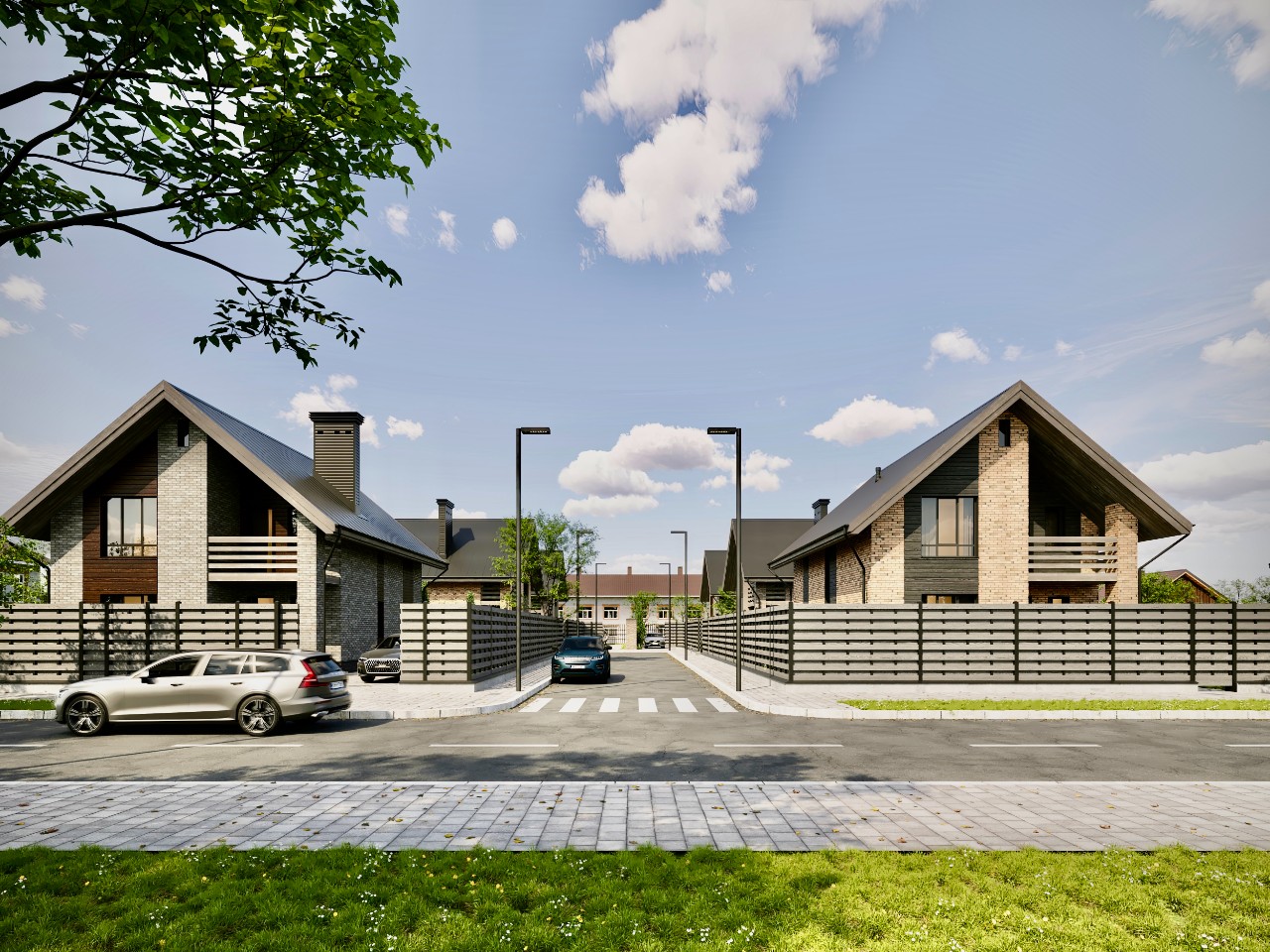 В комплексе ведется строительство 7 индивидуальтных жилых домов (нумерация в соответствии с ген. планом): 1) 4,33 соток 2) 4,33 соток 3) 5,18 соток 4) 4,82 соток 5) 5,37 соток 6) 5,37 соток (продан) 7) 7,2 соток (продан)